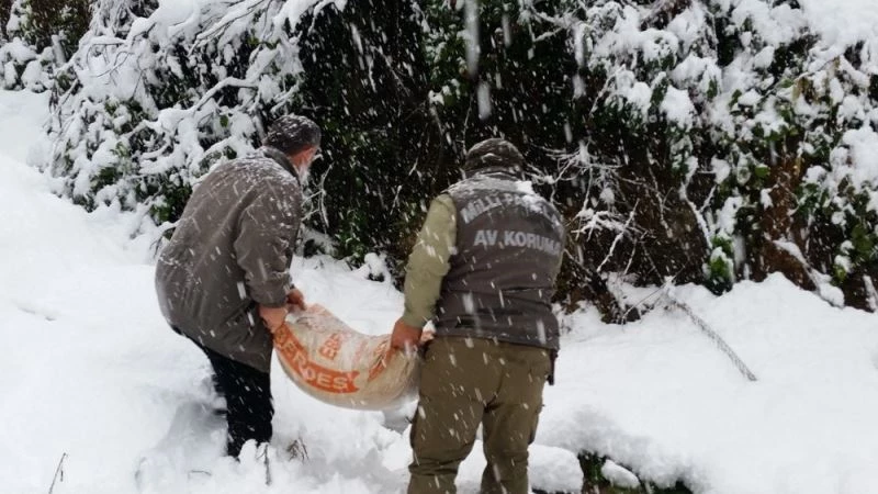 Zonguldak Doğa Koruma Milli Parklar İl Şube Müdürlüğü ekipleri yoğun kar yağışı nedeniyle yaban hayvanları için doğaya yem bırakıldı.