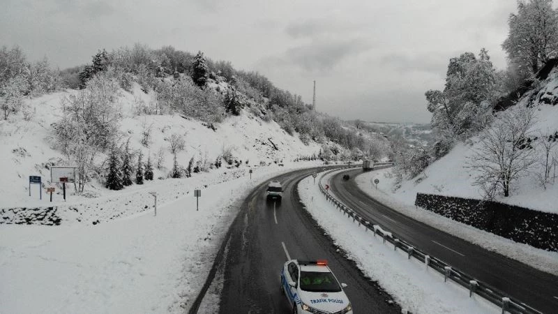 Zonguldak’ta dün gece saatlerinden itibaren etkili olan kar yağışı Ereğli karayolunda kartpostallık manzaralar oluşturdu. Sabahın erken saatlerinde yola çıkan vatandaşlar, yolun buzlanması sebebiyle yoldan çıktı. Ekipler tuzlama ve yol açma çalışmalarını sürdürdü.