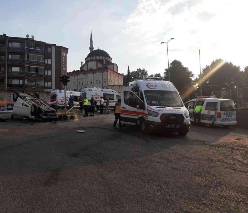 Yaşanan trafik kazası bir iş yerinin güvenlik kamerası tarafından saniye saniye kaydedildi. Görüntülerde otomobilin aniden yoldan çıktığı, kaldırıma çarptıktan sonra takla attığı görülüyor.