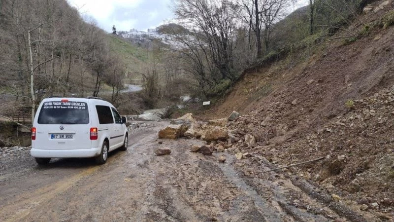 Zonguldak’taki heyelan iki mahalleye giden yolu kapattı