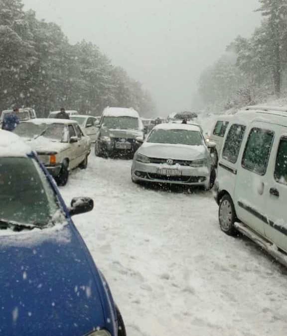Kar özlemini gidermek için Zorkun Yaylası`na giden yaklaşık 100 araç kar yağışının birden artması ve yolların kapanması dolayısıyla Zorkun`da mahsur kaldı.